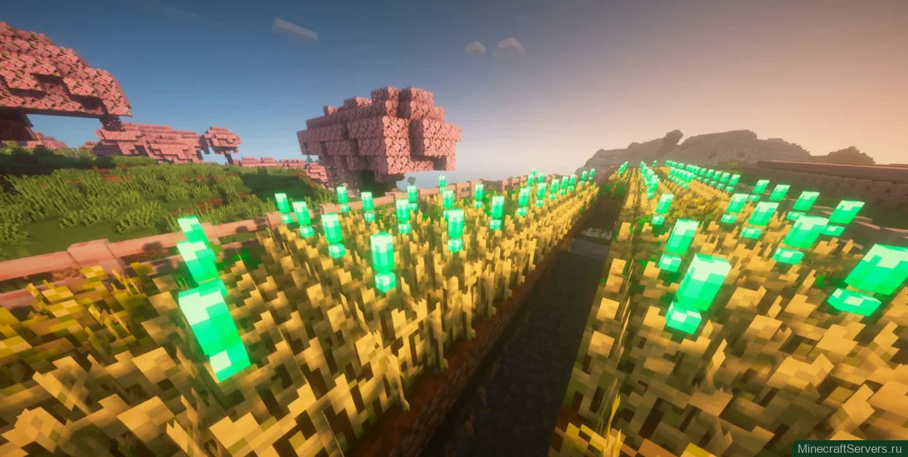 Ключевые механики включают создание ловушек (трапков), автоматическую шахту на спавне для добычи ресурсов и PvP-арену с ямами антигравитации и сундуками с лутом. Доступен набор особых зачарований, таких как АвтоПлавка