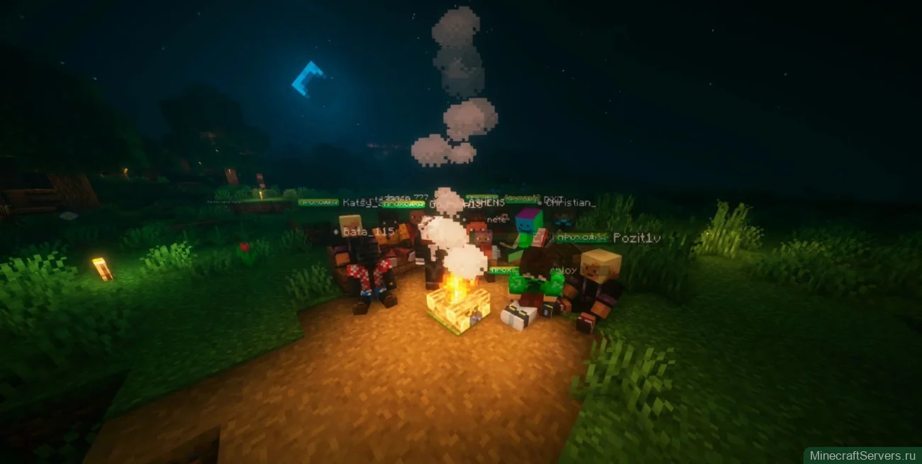 Более 1000 новых достижений с уникальными звуковыми оповещениями. Сервер обогащен новыми ambient-звуками в пещерах и биомах, реалистичными звуками штормов, а также расширенной коллекцией музыки. Для общения доступны голосовые чаты PlasmaVoice и SimpleVoice. Карту сервера можно посмотреть прямо на сайте